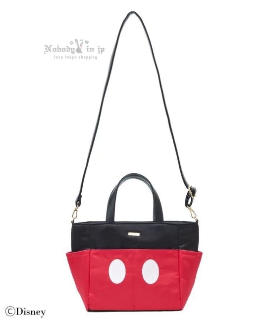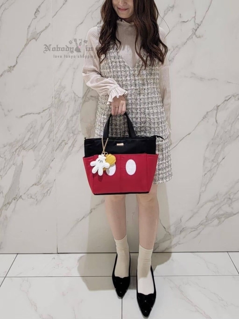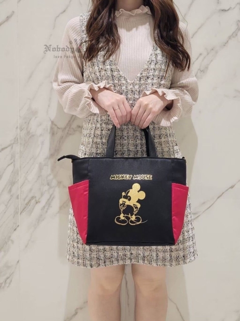 托特包採用米老鼠褲子為靈感的黑紅配色。